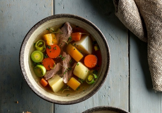 Cawl is recognised as a national dish of Wales and recipes date back to the 14th century. It is a broth and its ingredients tend to vary, but the most common recipes include chunks of lamb or beef with leeks, potatoes, swede, carrots and other root vegetables. “Cawl Cennin” is made with leeks and no meat. Cawl is often served with bread and cheese.