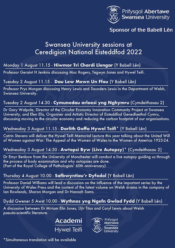 Swansea University is proudly sponsoring the Babell Lên (literary pavilion) at the Ceredigion National Eisteddfod 2022.