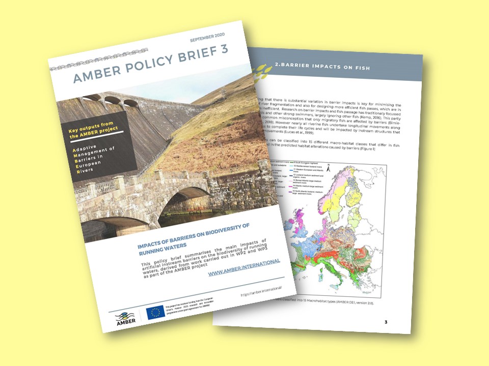 The AMBER project has recently published three policy briefs outlining the tools developed to improve stream connectivity and inform the new European Biodiversity strategy to open up 25,000km of free-flowing rivers in Europe by 2030. Policy Brief 1 take-home messages are clear: 1) most barriers to free-flow are small structures; 2) Loss of connectivity depends mostly on the number and location of barriers, not on their height; 3) many barriers in Europe are old and obsolete and provide opportunities for restoring connectivity. Policy brief 2 outlines some of the tools developed to help resource managers quantify stream fragmentation, assess barrier impacts and benefits, and make better, informed decisions on existing and future barriers based on what-if scenarios. While Policy Brief 3 summarises the impacts of artificial instream barriers on the biodiversity of running waters. It also points out many impacts of barriers on non-fish and plants which are usually ignored.