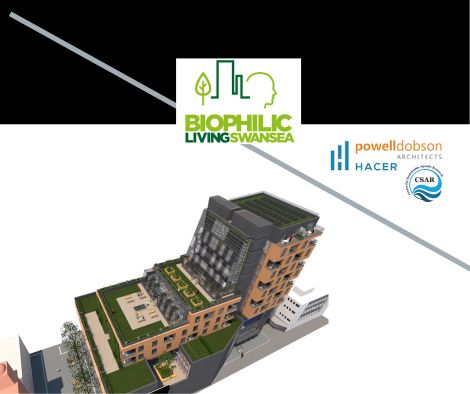 This project by Hacer Developments has been designed by Powell Dobson Architects in Swansea. The concept is the result of extensive collaborative working among a range of local organisations, including Swansea University, the Active Building Centre, Public Health Wales, Swansea Community Farm and Sero Homes Ltd.