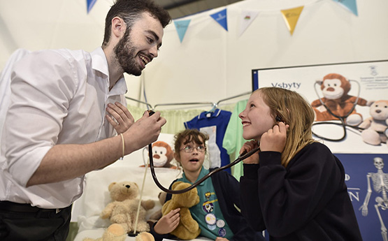 Trwy’r GwyddonLe mae’r Academi yn sicrhau bod modd i staff a myfyrwyr ôl-radd Gwyddorau cyfrwng Cymraeg y Brifysgol ddod â gwyddoniaeth yn fyw i'r degau o filoedd o bobl ifanc sy’n ymweld â’r Maes a rhoi llwyfan i arbenigeddau a phrosiectau gwyddonol y Brifysgol. Mae’r Academi wedi sicrhau bod y Gwyddonle wedi proffesiynoli a datblygu o ran diwyg y gofod a’r cyfleusterau ac allbwn, wrth weithio mewn partneriaeth gyda sefydliadau cenedlaethol fel S4C.