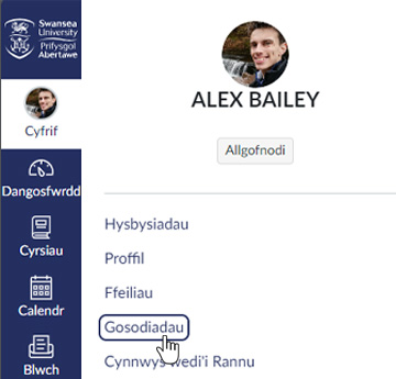Dilynwch y camau isod i osod eich rhagenwau yn Canvas: