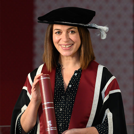 Mae Prifysgol Abertawe wedi dyfarnu gradd er anrhydedd i'r arloeswr ymchwil a datblygu blaengar Dr Sharon James.