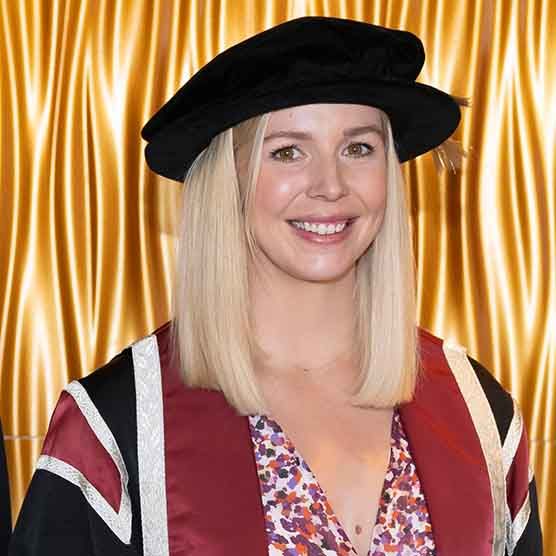 Mae Prifysgol Abertawe wedi dyfarnu gradd er anrhydedd i'r actores a graddedig Prifysgol Abertawe, Annabelle Apsion.