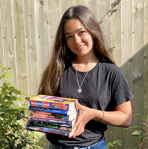 Graddiodd Brontë yn ddiweddar o Brifysgol Abertawe lle bu'n astudio Llenyddiaeth Saesneg ac Ysgrifennu Creadigol. Yn ystod ei hamser yn y Brifysgol, cymerodd ran mewn interniaeth fel rhan o'r modiwl Gwobr Dylan Thomas a roddodd gyflwyniad iddi i rôl bwysig blogio a'r cyfryngau cymdeithasol yn y byd llên. Ers hynny, mae nifer ei dilynwyr ar Instagram a TikTok sy'n rhannu ei brwdfrydedd am lyfrau wedi cyfnyddu i dros 10,000. Mae Brontë wedi gweithio gynt yn ei theatr leol ac yn un o'r lleoedd agosaf at ei chalon, y llyfrgell, lle tyfodd ei hawydd i hyrwyddo'r celfyddydau yng Nghymru. Darganfyddwch mwy am Bronte yma.