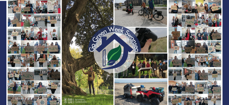 Roedd y digwyddiad hwn yn para am wythnos ac yn cynnwys mwy na 21 digwyddiad cynaliadwy megis trywyddion natur, glanhau traethau, gweu basgedi, sgyrsiau am newid yn yr hinsawdd, 2 Ffair Werdd â 36 stondin ac arddangosiad ynghylch glanhau traethau yn dangos yr eitemau rhyfedd a rhyfeddol y mae'r tîm wedi'u casglu o draeth Campws y Bae.