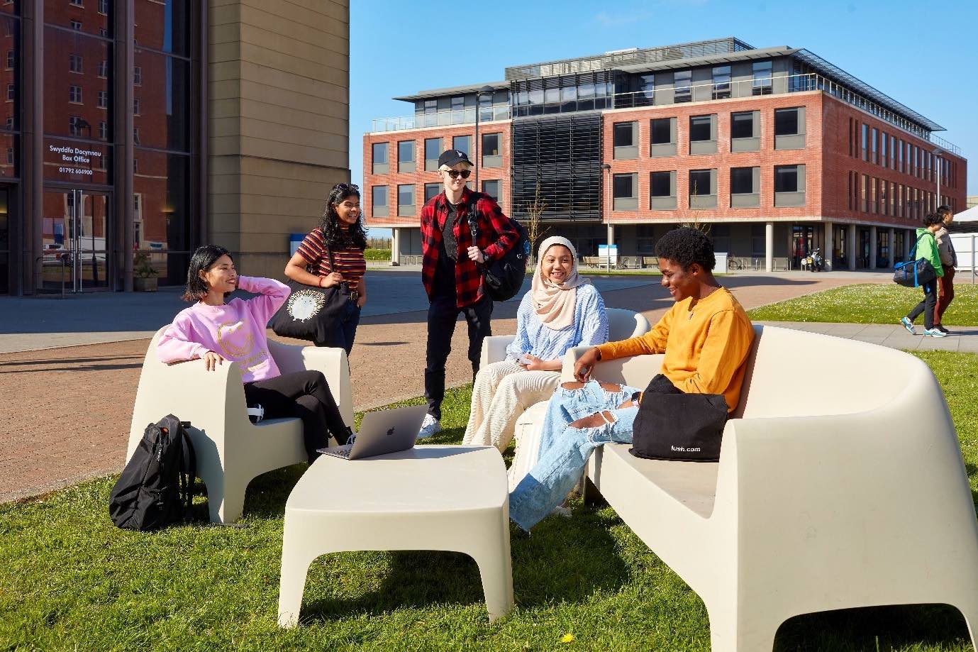 Mae Tîm EWCH YN FYD-EANG yn gweithio yn adeilad Talbot hefyd. Mae Tîm Ewch yn Fyd-eang, sy'n rhan o'r Swyddfa Datblygu Rhyngwladol, yn helpu myfyrwyr ym Mhrifysgol Abertawe i achub ar nifer o gyfleoedd dramor. Mae hyn yn cynnwys blwyddyn neu semester dramor, yn astudio yn un o'n prifysgolion partner neu'n cwblhau lleoliad gwaith neu leoliad cynorthwy-ydd addysgu. Bydd y cyfleoedd sydd ar gael yn dibynnu ar eich maes pwnc. Mae'r tîm hefyd yn cynorthwyo myfyrwyr a hoffai gael profiad gwirfoddoli, diwylliannol neu academaidd yn ystod yr haf, drwy amrywiaeth o raglenni rhyngwladol sy'n agored i fyfyrwyr ar bob cynllun gradd. Mae manylion llawn ar gael ar-lein yn ar dudalen we Ewch yn Fyd-eang, ynghyd â gwybodaeth am y cyllid a'r cymorth sydd ar gael. Wrth i chi adael Adeilad Faraday, bydd Canolfan y Celfyddydau Taliesin a'r Ganolfan Eifftaidd ar eich chwith.