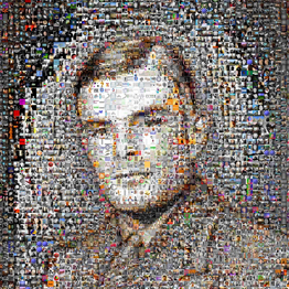 Ffigur: Llun mosaig o Alan Turing yn seiliedig ar bortread gwreiddiol gan DJ Rogers ac a grëwyd o ddelweddau ar hap gan adran Gyfrifiadureg Prifysgol Abertawe.