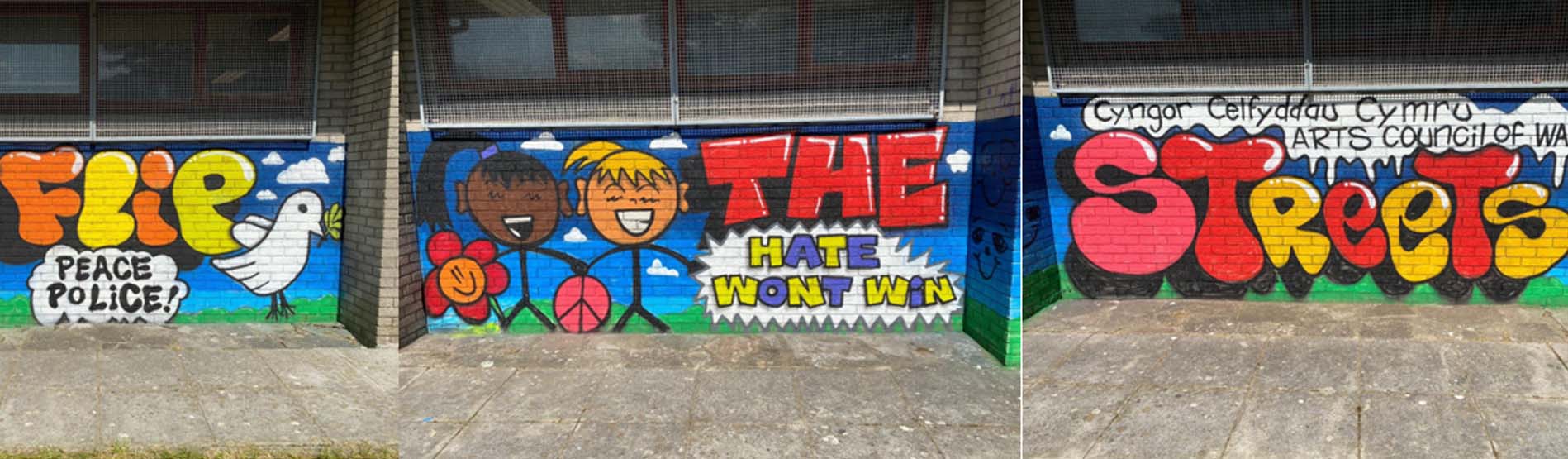 Rhoddodd y prosiect hwn gyfle i gyflwyno neges bwerus i'r rhai hynny sy'n ymdrechu i darfu ar heddwch cymunedau lleol ac anfon negeseuon niweidiol, drwy ddisodli eu neges â'r datganiad ‘ni fydd casineb yn fuddugol’. Dangosodd yr ‘heddlu heddwch’ fel y'i mabwysiadwyd gan yr artistiaid ifanc a fu'n bresennol ddydd Sadwrn fod gobaith o gryfhau’r ymgyrch yn erbyn agweddau hiliol a throseddau casineb sydd i’w gweld yn eang ar draws cyfryngau newyddion.