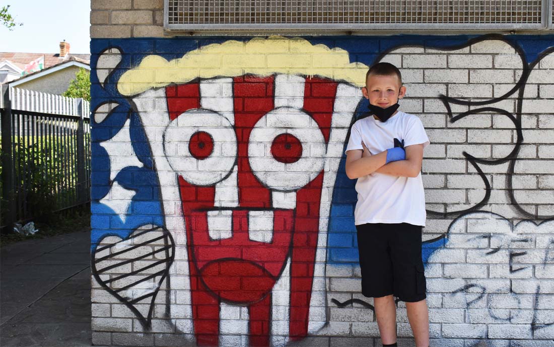 - Arddangos gwrthwynebiad i iaith a throseddau casineb drwy alluogi aelodau'r ganolfan gymunedol i lunio gwaith celf a dyluniadau i orchuddio fandaliaeth.