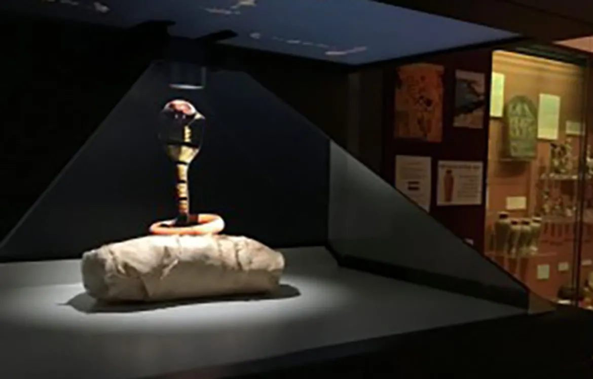 Mae'r Ganolfan Eifftaidd yn Abertawe'n cynnwys arddangosfa realiti cymysg ar ffurf holograff. Mae'n cyfuno diwylliant diriaethol materol yr hen Aifft â dehongliad gwyddonol digidol sy'n defnyddio uwch-dechnoleg mewn un arddangosyn. Wedi'i datgelu fel rhan o'r digwyddiad Hologramau a Hanes a gynhaliwyd ar 10 Mawrth 2018 fel rhan o Wythnos Wyddoniaeth Prydain a gŵyl Civilisations y BBC yn 2018, mae'r arddangosfa newydd hon yn hynod boblogaidd gydag ymwelwyr.