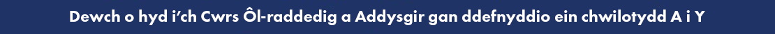 - edrychwch ar ofynion mynediad y cwrs ar dudalen y cwrs.