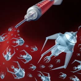 Mae'r cydweithrediad hwn ag HMRI yn ymchwilio i ddefnyddio nanoronynnau at ddiben cludo cyffuriau therapiwtig i safleoedd tiwmor penodol, techneg a allai leihau sgil effeithiau cyffuriau'n sylweddol.