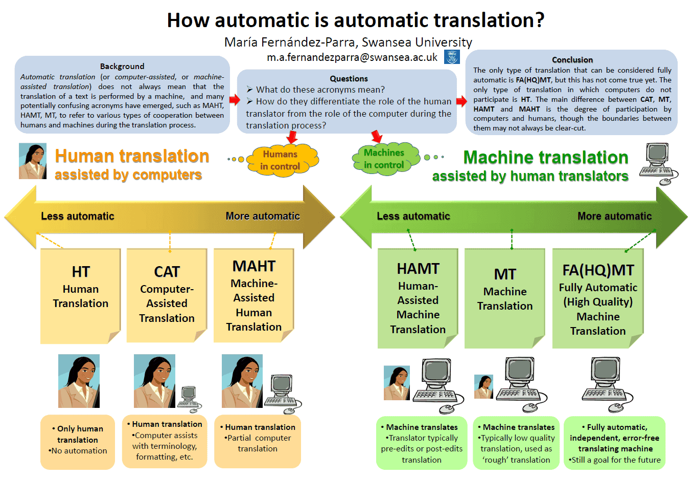 Mae Maria Fernandez-Parra yn Athro Cysylltiol mewn Cyfieithu a Chyfieithu ar y Pryd. Mae hi'n gyfieithydd ac yn gyfieithydd ar y pryd cymwysedig o’r Universitat Autònoma de Barcelona, Sbaen. Cwblhaodd MA hefyd mewn Cyfieithu gyda Thechnoleg Iaith a doethuriaeth mewn Cyfieithu â Chymorth Cyfrifiadur ym Mhrifysgol Abertawe ac mae ganddi gymhwyster addysgu TAR. Mae wedi cyhoeddi'n eang mewn pynciau sy'n ymwneud â chyfieithu, yn enwedig technolegau cyfieithu, theori cyfieithu, cyfieithu technegol ac arbenigol, cyfieithu â chymorth cyfrifiadur a chyfieithu sefydliadol. Ar hyn o bryd hi yw Cyfarwyddwr yr MA Cyfieithu a Chyfathrebu Rhyngddiwylliannol, a chyfarwyddwr STING, sef Grŵp Ymchwil Cyfieithu a Chyfieithu ar y Pryd Abertawe. Mae hi'n gyn-ysgrifennydd y Ganolfan Ymchwil Iaith ym Mhrifysgol Abertawe ac yn gyn-drysorydd APTIS (Cymdeithas Rhaglenni Cyfieithu a Chyfieithu ar y Pryd yn y DU ac Iwerddon). Ochr yn ochr â'i dyletswyddau addysgu ac ymchwil, mae'n parhau i fod yn gyfieithydd ac yn gyfieithydd ar y pryd llawrydd, rôl y mae wedi'i chynnal yn barhaus ers 1994. Mae hi wedi cymhwyso yn RWS Trados Studio ers 2008, yn Aelod o Sefydliad Siartredig Ieithyddion (CIOL) ers 1997, yn Aelod Academaidd o'r Sefydliad Cyfieithwyr a Chyfieithwyr ar y Pryd (ITI) ers 2015 ac yn Uwch-gymrawd yr Academi Addysg Uwch (SFHEA) ers 2016.