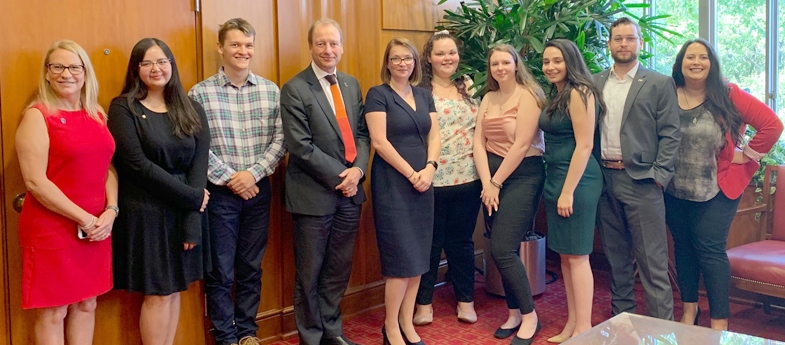 Yn ogystal, bu'r grŵp yn cwrdd â myfyrwyr o Abertawe sy'n dilyn rhaglen PhD gydweithredol yn Nhecsas ar hyn o bryd, gan dderbyn taith dywys o amgylch y cyfleusterau nanofeddygaeth a meddygaeth fanwl o'r radd flaenaf yng Nghanolfan Feddygol Tecsas a dysgu am waith cydweithredol ymchwil gydag Ysgol Feddygol Prifysgol Abertawe, y Sefydliad Gwyddorau Bywyd a'r Coleg Peirianneg.