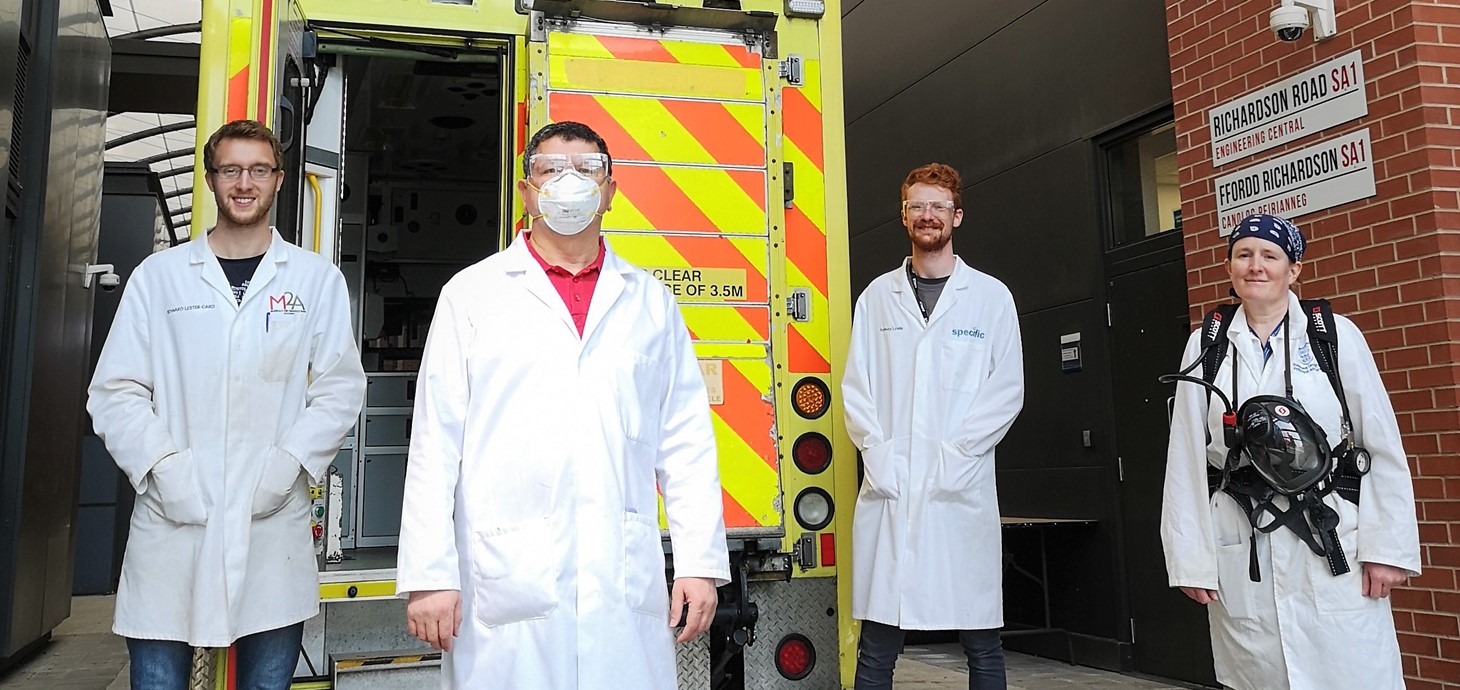 Mae myfyrwyr y brifysgol yn helpu i gwtogi’r amser sydd ei angen i lanhau ambiwlans o 45 munud i lai na 20 munud.