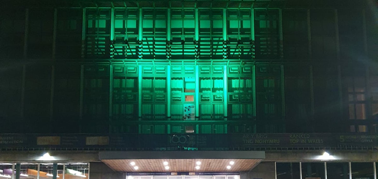 Fel ffordd o ddathlu Wythnos Ailgylchu, a ddechreuodd ddoe, mae'r Brifysgol yn cefnogi ymgyrch Wrap Cymru, sef Bydd Wych, Ailgylcha, ac yn dangos y gefnogaeth honno drwy droi Tŷ Fulton yn wyrdd bob nos yr wythnos hon.