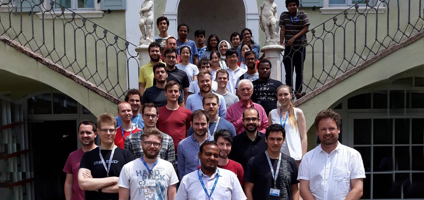 Yr Athro Gert Aarts (yn y tu blaen ar y dde) a myfyrwyr yn ystod y Rhaglen Hyfforddi Doethurol a gyd-drefnwyd ganddo yn ECT* mewn llun a dynnwyd yn 2018.