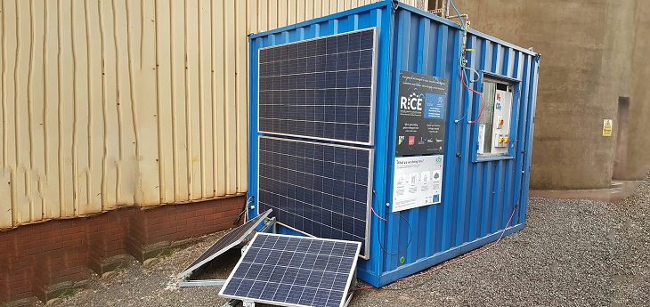 Mae’r uned arddangos, sy’n cynhyrchu hydrogen gwyrdd trwy ynni adnewyddadwy, wedi cael ei datblygu’n rhan o’r prosiect £9.2m Lleihau Allyriadau Carbon Diwydiannol (RICE), a ariannwyd yn rhannol gan Gronfa Datblygu Rhanbarthol Ewrop trwy Lywodraeth Cymru, gyda’r nod o arddangos technoleg newydd ar raddfa ddiwydiannol.