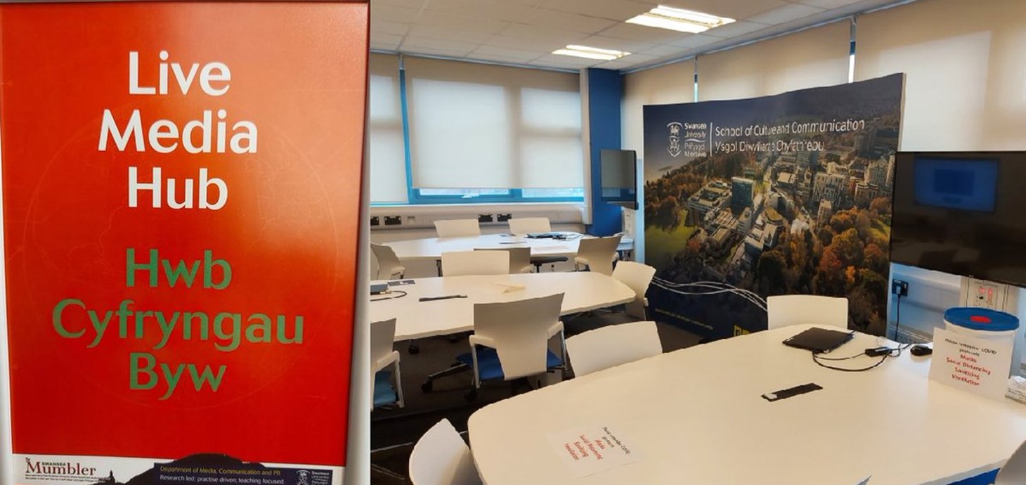 Rhoddwyd cyfle arbennig i fyfyrwyr o Adran y Cyfryngau a Chyfathrebu Prifysgol Abertawe gael profiad o ystafell newyddion byw.