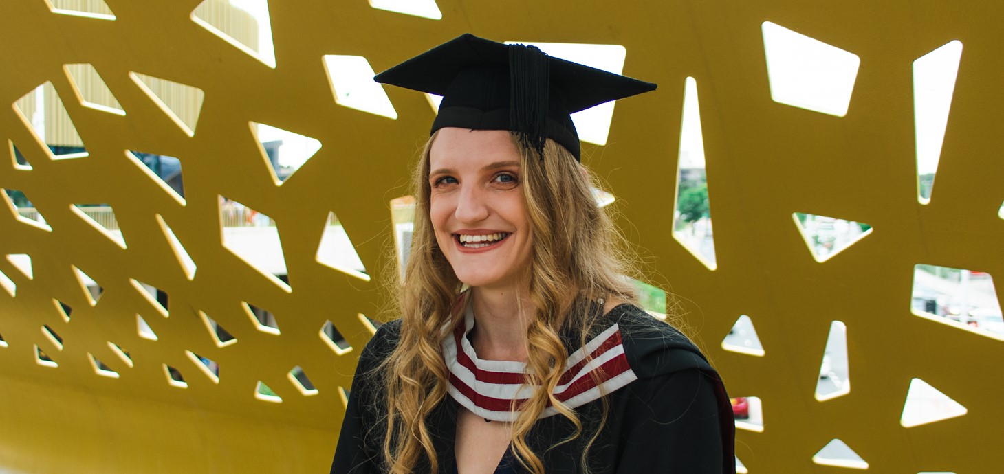 Derbyniodd Jessica Smith, o Shirley yng Nghanolbarth Lloegr, ei gradd ar y llwyfan yn Arena Abertawe yr wythnos hon, gan goroni hanes o gyflawniadau nodedig yn Abertawe. Dyfarnwyd gradd BA (Anrhydedd Dosbarth Cyntaf) mewn Hanes a Daearyddiaeth iddi yn 2020, cyn iddi ymgymryd â'r MA.