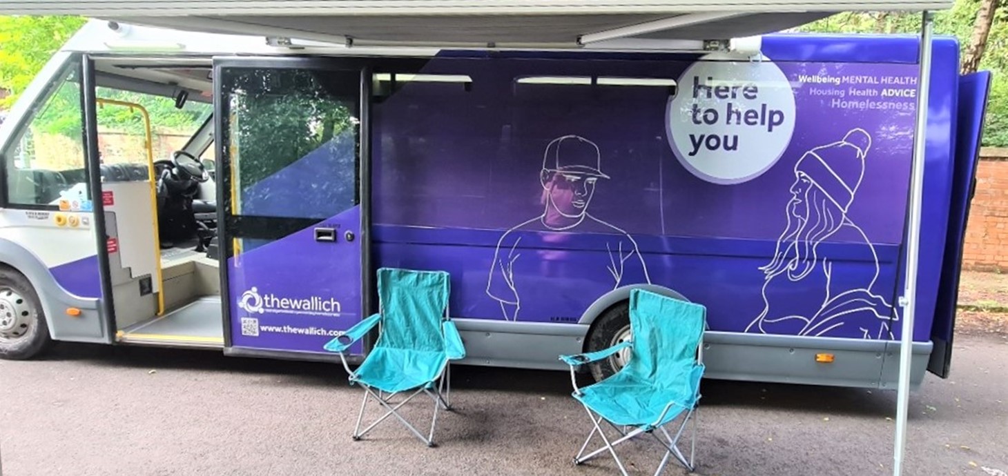 Gan ddefnyddio cyfleusterau megis cerbyd cymorth symudol (yn y llun) ochr yn ochr â thîm staff Bwrdd Iechyd Prifysgol Bae Abertawe, bydd tîm The Wallich yn cynnal sgrinio gwrthgorff rheolaidd ymhlith pobl ddigartref a phobl mewn cartrefi ansefydlog iawn maent yn gweithio gyda nhw.