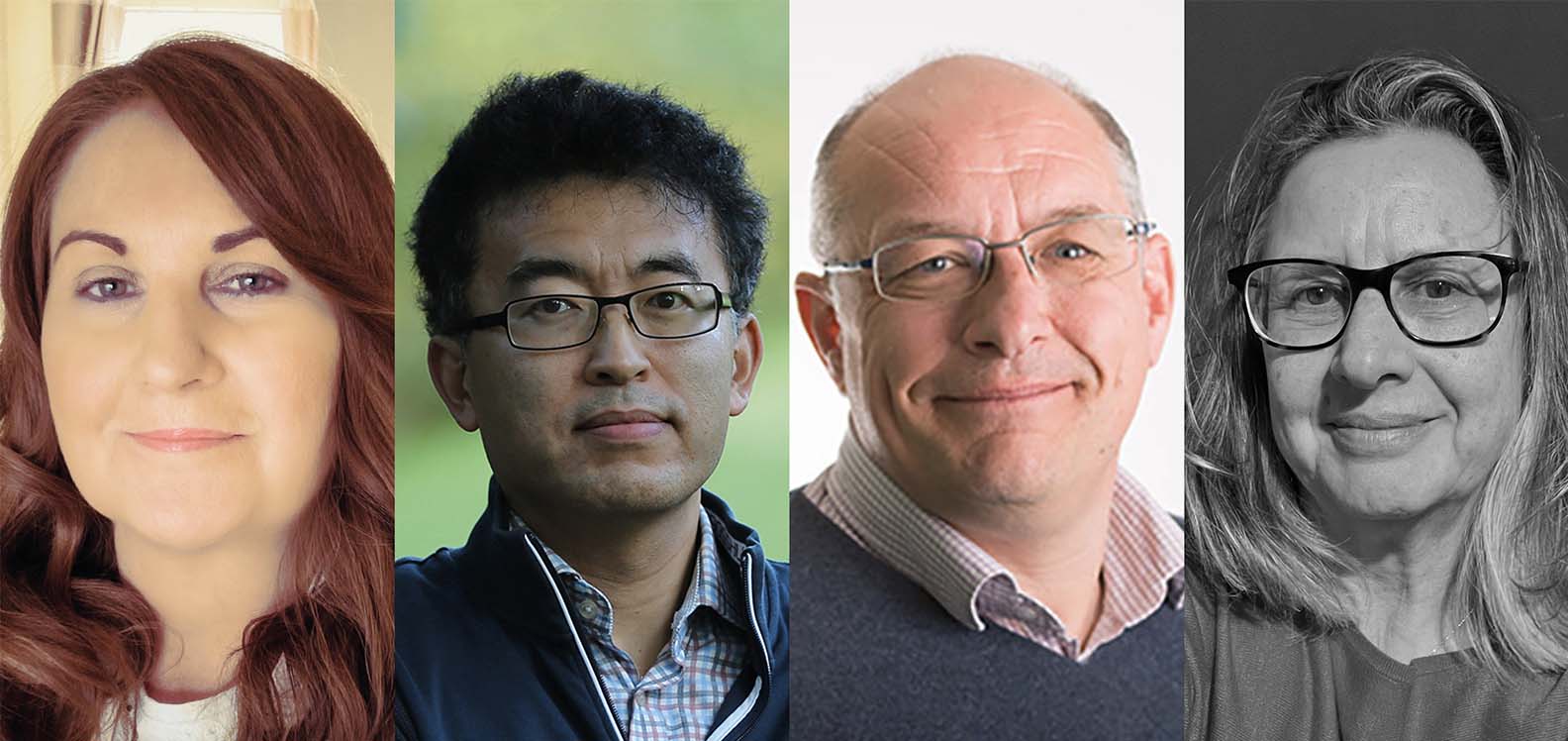 O'r chwith i'r dde: Dr Elaine Canning, yr Athro Chenfeng Li, yr Athro Paul Rees a'r Athro Andrea Tales