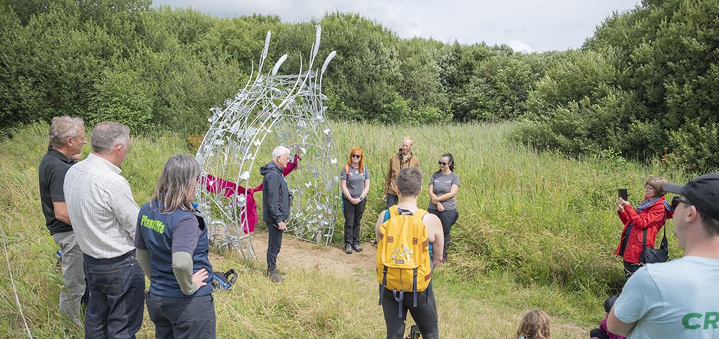 Wedi'i saernïo gan yr artist a gof o Gymru James Eifion Thomas, mae'r cerflun yn borth i'r safle gwarchodedig hwn, gan ymgorffori elfennau allweddol o'r dirwedd ac yn symboleiddio'r ymrwymiad i warchod ei gynefin ar gyfer pobl a bywyd gwyllt ymhell i’r dyfodol .