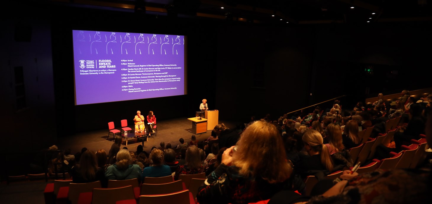 Cynhaliwyd ‘Prifysgol Abertawe yn erbyn y Menopos’ yng Nghanolfan y Celfyddydau Taliesin ar 20 Hydref, gan nodi dechrau Gŵyl Wyddoniaeth Abertawe.