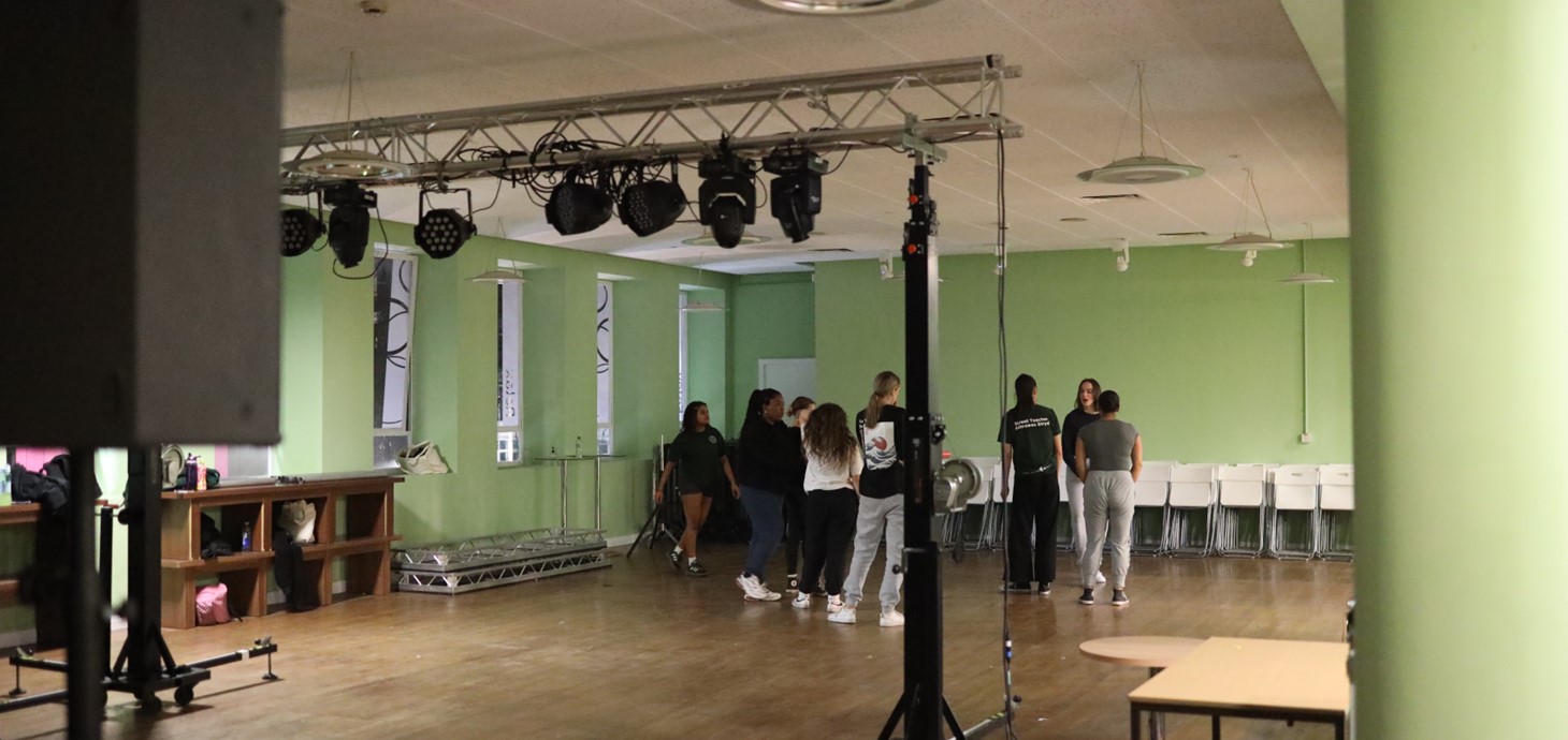 Mae myfyrwyr o Gymdeithas Ddawns y Brifysgol eisoes yn gwneud defnydd da o'r lle sydd newydd gael ei ailwampio.