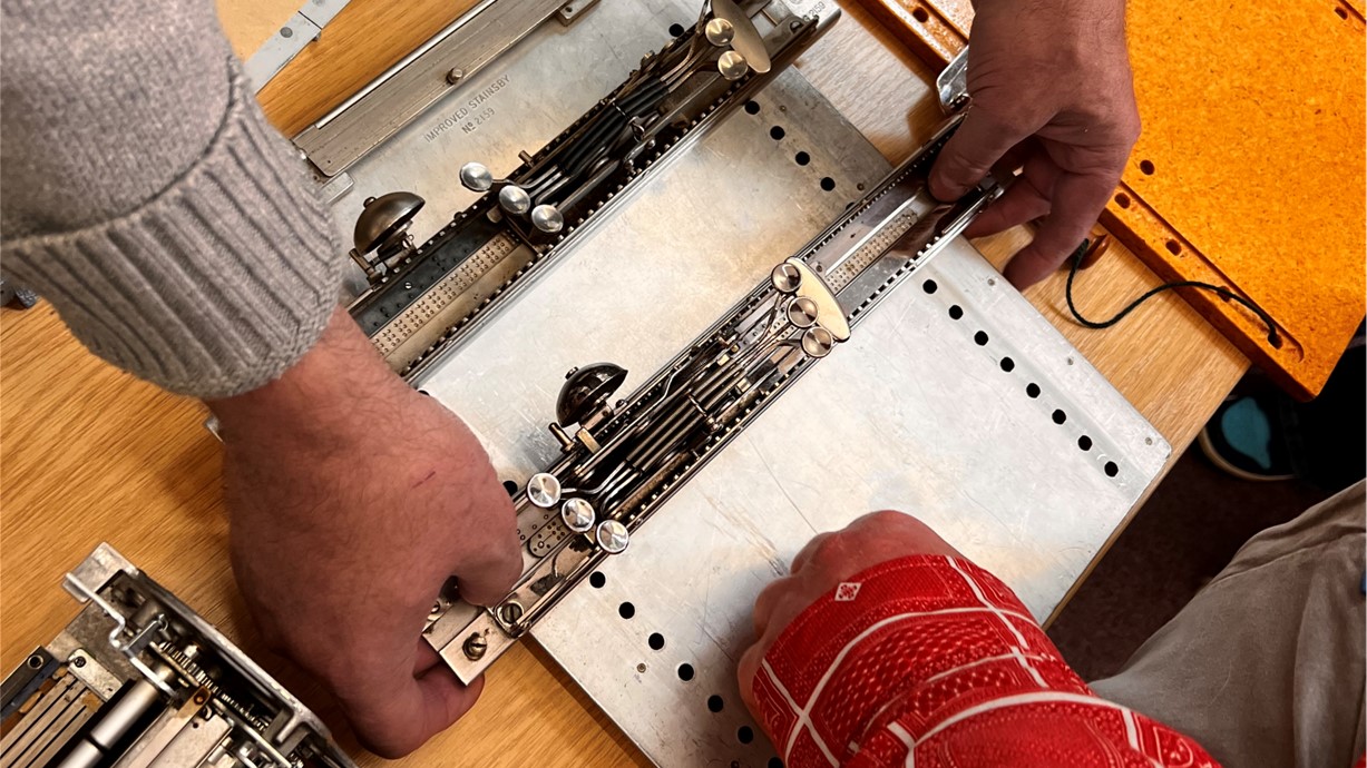 Un esiampl o'r peiriannau braille y gall gwesteion gael profiad ohonynt yn nigwyddiad Braille 200 Prifysgol Abertawe. Credyd: RNIB.