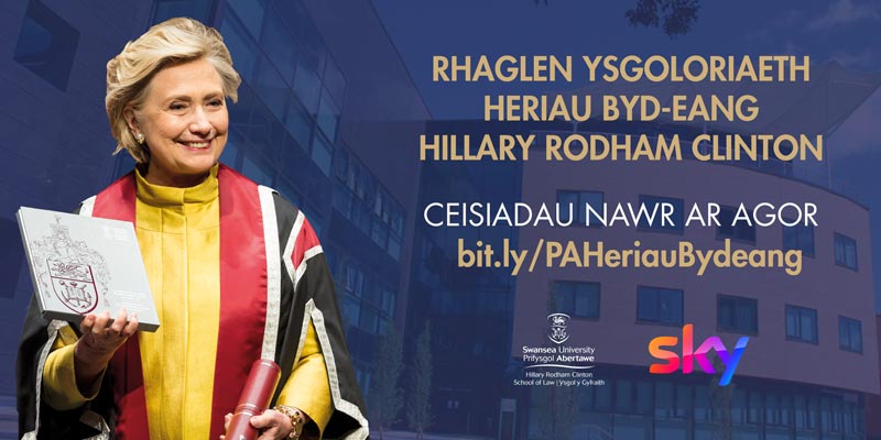 Gwnaeth yr Ysgrifennydd Clinton y cyhoeddiad yn ystod Darlith Goffa James Callaghan, a gafodd ei darlledu fel rhan o ddathliadau canmlwyddiant Prifysgol Abertawe, ddydd Iau, 16 Gorffennaf.