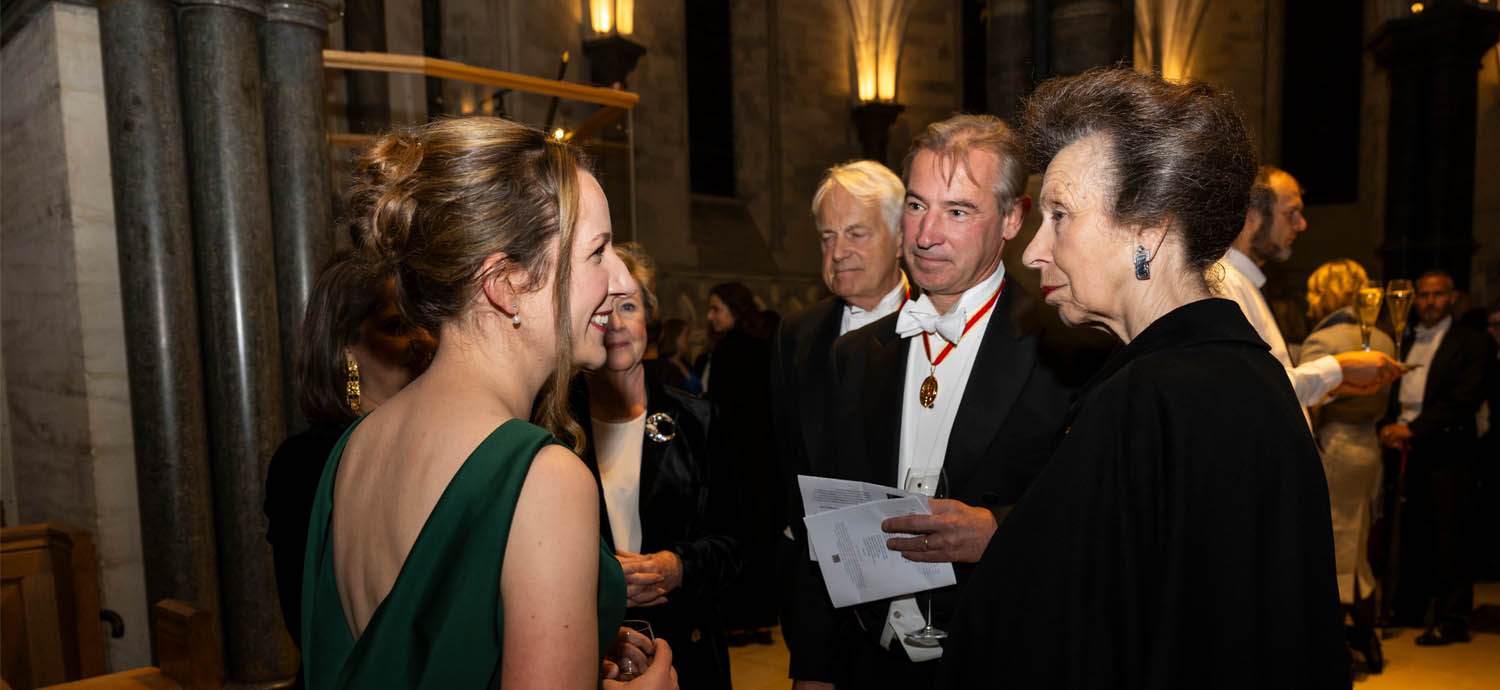 Yn y llun: Yr Athro McDermott Rees yn cwrdd â'i Huchelder y Dywysoges Frenhinol Anne, KG KT GCVO QSO, Meinciwr Brenhinol y Deml Fewnol.