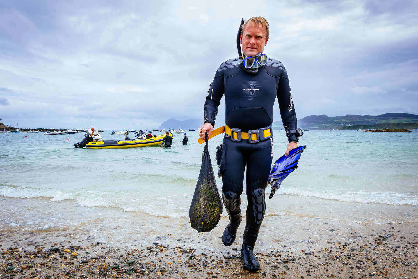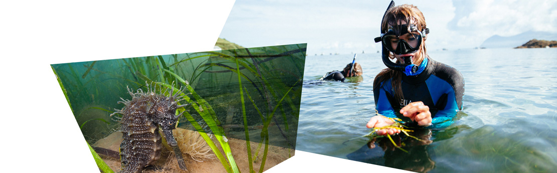 Gan weithio gydag amrywiaeth o fudiadau gan gynnwys Prosiect Morwellt, Sky Ocean Rescue a WWF-UK, a chan gydweithio â chymunedau lleol a Llywodraeth y DU, mae’r tîm wrthi’n cynnal prosiect adfer morwellt ar raddfa fawr yn y DU ac maent wedi dechrau drwy blannu 2 hectar o ddolydd.
