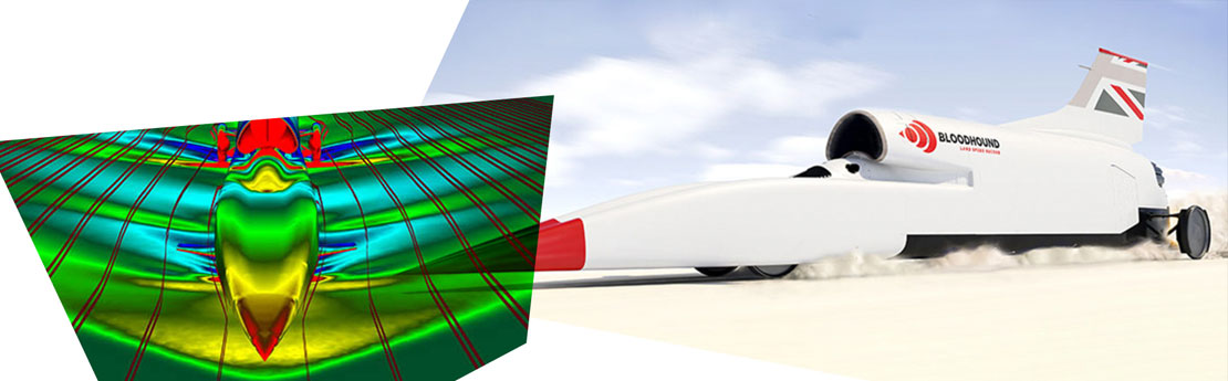Gwnaeth tîm Deinameg Hylif Cyfrifiadurol Prifysgol Abertawe gyfraniad sylweddol at y THRUST SSC gwreiddiol. Lluniwyd dyluniad aerodynamig THRUST SSC gan ddefnyddio FLITE, sef dull oedd yn sicrhau modelu cywir ar y rhyngweithiad rhwng y cerbyd sy'n symud a'r ddaear. Roedd hyn yn caniatáu i efelychiadau awyrofod gael eu cynhyrchu dros nos yn hytrach na rhai misoedd. Mae’r ymchwil ym maes Dynameg Hylifau Cyfrifiadurol (CFD) ar gyfer BLOODHOUND SSC yn cael ei gwneud yng Nghanolfan Zienkiewicz er Peirianneg Gyfrifiadurol.