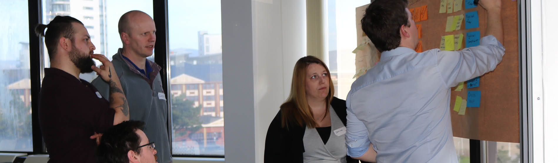 - Profi – pan fyddwch chi’n trin a thrafod gyda’ch rhanddeiliaid i brofi a datblygu ar y cyd syniadau ‘yn y fan a’r lle’ a dysgu sut i dderbyn methiant neu lwyddiant.