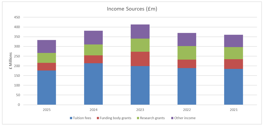 In the year to July 2025 the University generated income of £333m, reporting a deficit of £35m. In line with many institutions within the Higher Education sector, the University faced major challenges to the finances which are set to continue. An ambitious Financial Sustainability Programme was launched in 2023/24 and continues to run, securing the savings required to continue meeting the needs and expectations of our students.