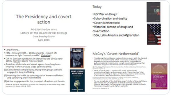 Following the Christmas vacation, the GPDO, like many organisations working within the field of drug policy, set its sights on the 66th session of the UN Commission on Narcotic Drugs. The annual meeting of the central policy-making body of the United Nations system took place in Vienna, 13-17 March. Before attention shifted to Austria and related activities, however, the academic calendar continued with Dave’s MA module, The Global Governance of Drugs, including an excellent guest seminar from Dr Khalid Tinasti, former GDPO-Swansea University Honorary Research Fellow and research associate at the Geneva Graduate Institute . Focusing on "Great Powers’ and the IDCR: The United States and the Russian Federation – Reversing Roles?" Khalid’s on-line session fittingly touched upon many of the debates and issues that were to be seen in at the CND the following month. A few weeks later the GDPO also welcomed, this time in person, John Walsh, Director for Drug Policy and the Andes at the Washington Office on Latin America. During his time in Wales, John not only met with the team on future collaborations but also spoke with MA students on the role of civil society within the international drug control regime.