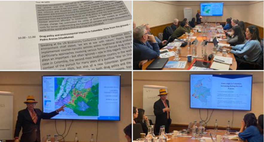Building to some extent upon our previous work on the intersection between drug policy and the environment, the week before the CND saw the Observatory run a scoping workshop in London. Funded by a Swansea University Natural Environment Research Council ‘Discipline Hopping’ grant, ‘Counter-Narcotic Policy in Colombia: Developing a Biodiversity Risk Assessment Framework,’ was co-hosted with GDPO partner organisation Corporación VisoMutop en Colombia and involved as co-PIs Dave and Professor Luca Borger of the Department of Biosciences, Swansea University. Participants involved a range of experts from drug policy analysis, remote sensing, and ecology, including in terms of the latter from the Natural History Museum, as well as representatives of coca farmers in Colombia. After a productive and stimulating event, it is the intention that follow-on activities will include a number of publications, fieldwork in Colombia and further grant capture activities.