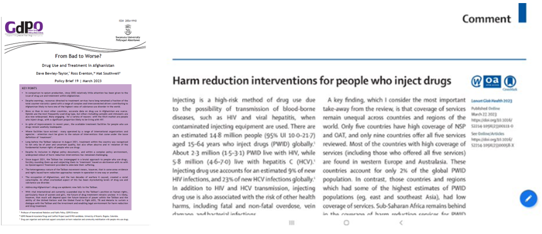 Analysis of the UN multilateral system was also the focus of several publications over the course of the quarter. These included in January Dave’s The Spectre of Article 14: The INCB Report for 2021, Regulated Cannabis Markets and the Board’s Potential Enforcement Measures, (a co-branded IDPC-GDPO report) and in March his contributions to a TNI-WOLA Long Read/Commentary. Co-authored with Tom Blickman and Martin Jelsma (TNI) and John Walsh, Wilful Blindness: INCB Can Find Nothing Good to Say on Cannabis Legalisation is a brief response to the INCB’s Annual Report for 2022. On a related issue, we were pleased to see the publication of a GDPO supported piece of work focusing on the dilemmas of cannabis regulation within the European Union. The very timely ‘Cannabis Regulation Through the “Without Right” Clause in Article 2(1) of EU Framework Decision 2004/757/JHA on Illicit Drug Trafficking,’ by Piet Hein van Kempen and Masha Fedorova (Radboud University, The Netherlands), was published in the European Journal of Crime, Criminal Law and Criminal Justice. Another long in gestation output was the GDPO Drugs and Conflict Project Policy Brief, ‘From Bad to Worse? Drug Use and Treatment in Afghanistan.’ With the original idea for the Brief dating back to the GDPO-TERI-AREU Executive Programme in New Delhi in March 2020, this was co-authored by Dave, Ross Eventon (GDPO Research Associate/Drugs and Conflict Project Lead and PhD candidate, University of Rosario, Colombia) and Mat Southwell (Drug user organiser and technical support consultant on harm reduction and community mobilisation with people who use drugs). Research for the Brief drew not only on online interviews with treatment providers within Afghanistan, but also data gleaned from Mat’s work in Kabul in January 2023.