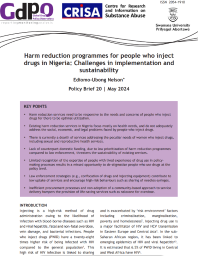 Harm reduction services need to be responsive to the needs and concerns of people who inject drugs for there to be optimal utilization. Existing harm reduction services in Nigeria focus mostly on health needs, and do not adequately address the social, economic, and legal problems faced by people who inject drugs. There is currently a dearth of services addressing the peculiar needs of women who inject drugs, including sexual and reproductive health services. Lack of counterpart domestic funding, due to low prioritization of harm reduction programmes compared to law enforcement, threatens the sustainability of existing services. Limited recognition of the expertise of people with lived experience of drug use in policy[1]making processes results in a missed opportunity to de-stigmatize people who use drugs at the policy level. Law enforcement strategies (e.g., confiscation of drugs and injecting equipment) contribute to low uptake of services and encourage high-risk behaviours such as sharing of needles-syringes. Inefficient procurement processes and non-adoption of a community-based approach to service delivery hampers the provision of life-saving services such as naloxone for overdose.