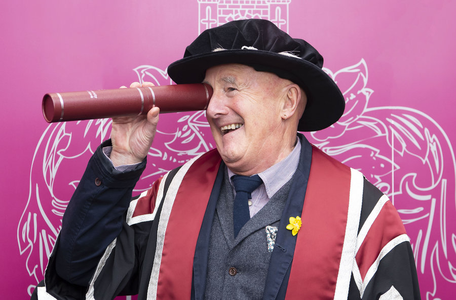 Swansea University awards an honorary degree to the legendary Welsh entertainer, Dewi Pws.