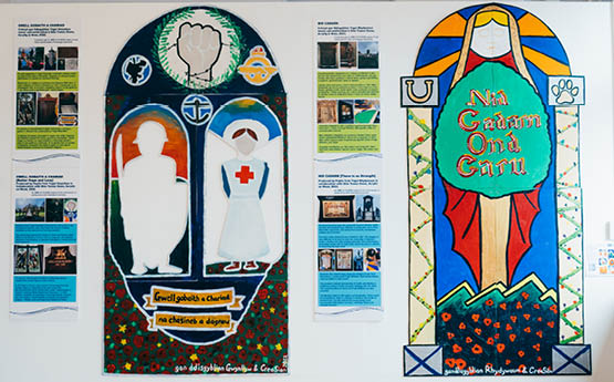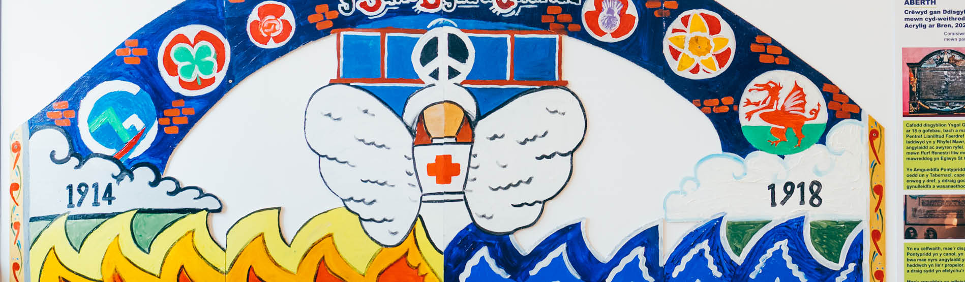 Funded by the Imperial War Museum (IWM), this project involved six schools in south-east Wales and muralist Siôn Tomos Owen. We introduced pupils to the concept of war memorials, then took them on field trips to view local memorials. They then created their own artworks expressing their thoughts about war and conflict. The resulting works were displayed at the Pierhead Building in Cardiff Bay for a month in June-July 2023, and then at the Rhondda Heritage Park until September 2023.