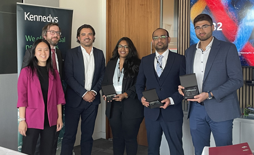 Winners standing with Paul Henton (Quadrant Chambers), Ingrid Hu and Michael Biltoo (Kennedys Law)