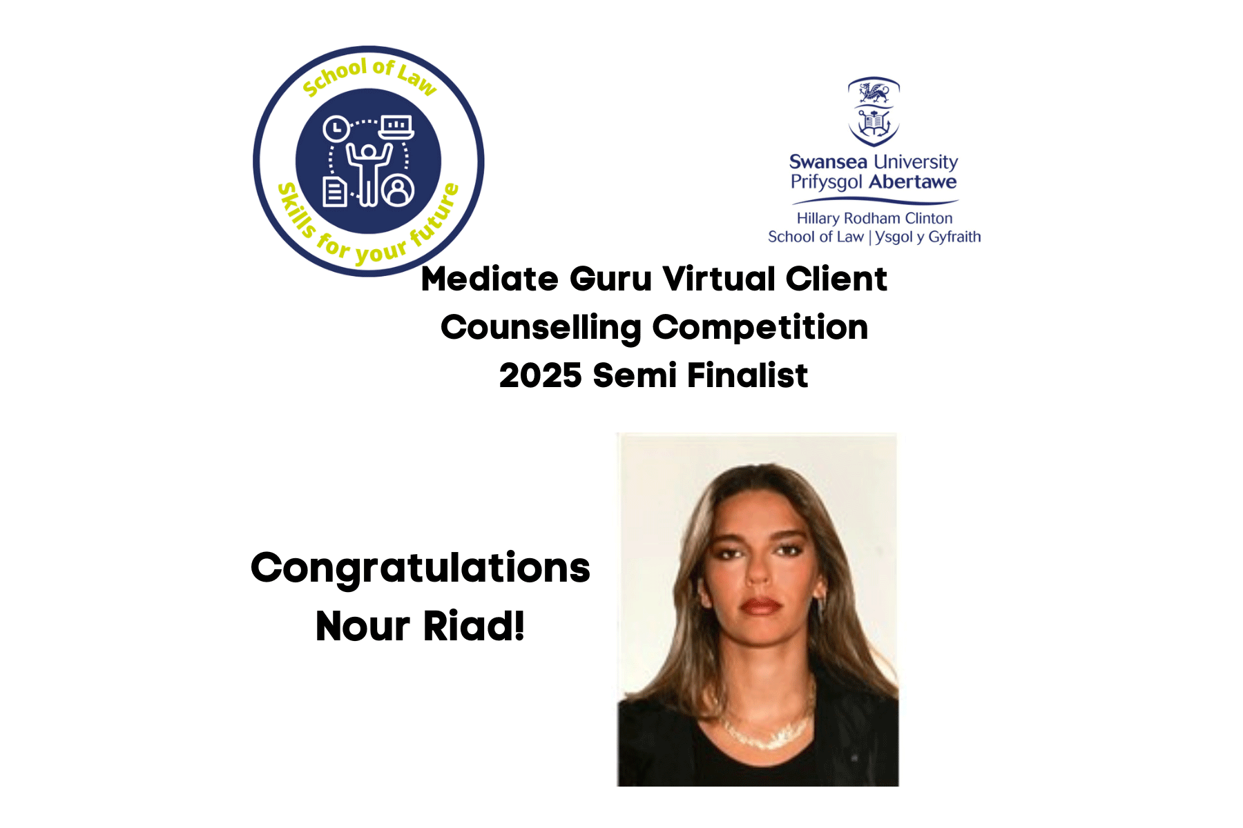 When January comes around, students are often focused on assessments and 2025 was no different. However, competition season doesn’t stop and as is often the case, this January was the time for the first skills event of 2025- the Mediate Guru Virtual Client Counselling Competition. Mediate Guru run a number of events throughout the year, in this skill as well as negotiation and mediation, and Swansea frequently enter teams, giving students the chance to engage with students from around the world and get judges feedback from different jurisdictions.