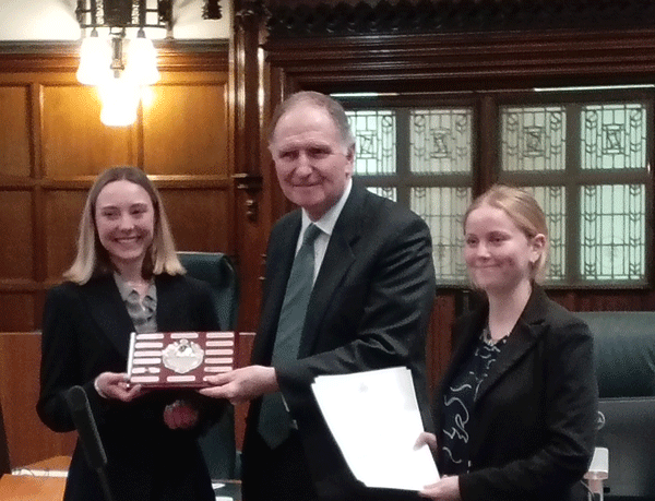 The four competing students, Maren Julian, Tegan Bennett, Amelia Triaca (all 3rd years), and Cara di Teodoro (2nd year), had all won their way through to this event by scoring highly in four preliminary rounds to qualify for the semi finals before battling through an intense semi-final judged by members of Angel Chambers, the supporters of the Senior Moot and of the Communication Skills Programme.