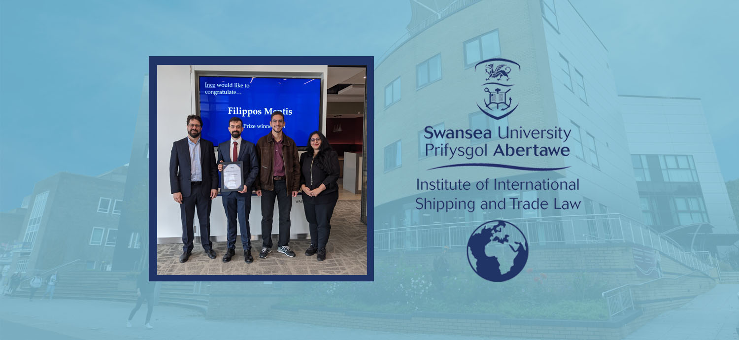 Filippos, originally hails from Greece, and at Swansea studied Admiralty Law, Charterparties: law and Practice, Carriage of Goods by Sea, Land and Air and Marine Insurance, as part of his LLM degree in International Maritime Law achieving a distinction grade in all of his taught modules. At the Ceremony, Filippos was accompanied by Associate Professor Leloudas and Dr Tabetha-Kurtz Shefford, two elite members of the Swansea LLM teaching team.