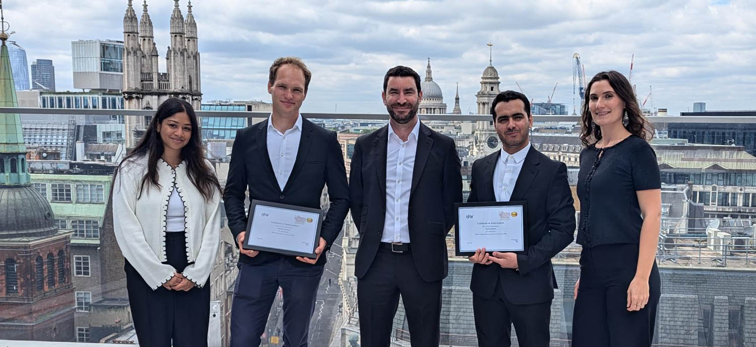 The Prizes were awarded in London by Richard Neylon who is a Swansea graduate and Partner at HFW. The prize winners were accompanied by Professor George Leloudas and Dr Tabetha Kurtz-Shefford to the Prize ceremony.
