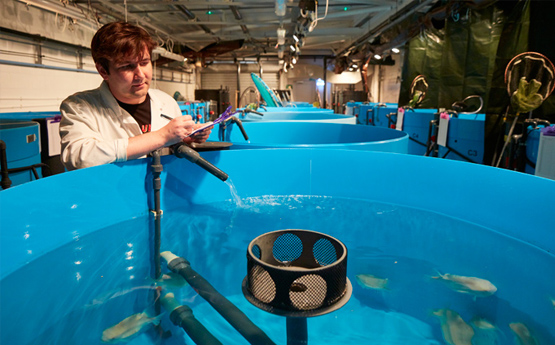 The Centre for Sustainable Aquatic Research (CSAR) is equipped with modern, fully programmable recirculating aquaculture systems. CSAR is designed for applied research on a diverse range of aquatic organisms, from temperate to tropical and marine to freshwater environments.