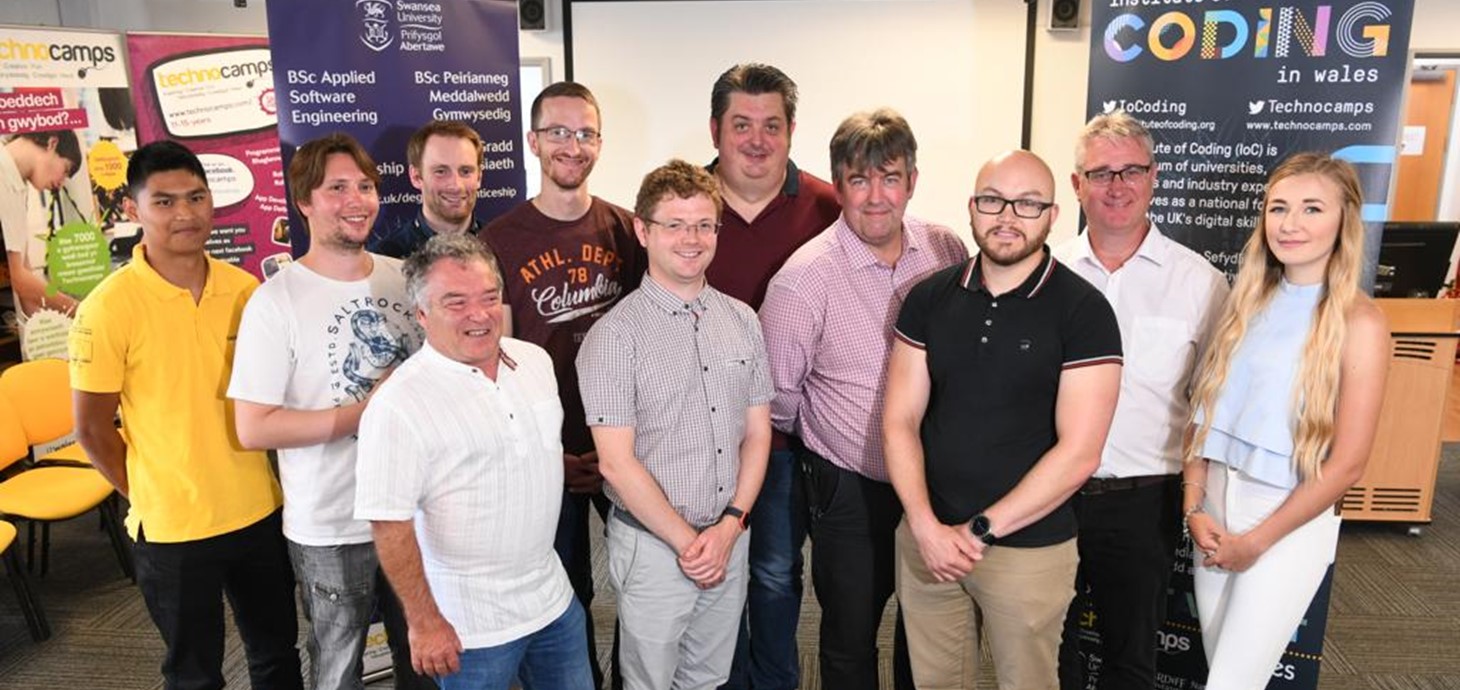 Students and staff from Swansea University’s Degree Apprenticeship Programme in Applied Software Engineering recently gathered with local businesses and organisations to celebrate the success of the first learners to complete the three year course.